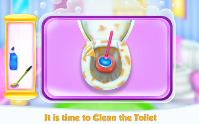 First, you have to make sure you eliminate that stinky garbage that is spread all over the bathroom. Use the tools you have and try to make each task in the way it should be done. There are another cleaning activities on there and to be able to reach the decoration part you must go through all of them. Clean the bath tube the sink and the toilet because there is where the most bacteria is gathered.