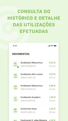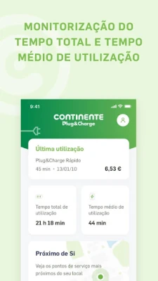 Com a App Continente Plug&Charge pode: - Utilizar o serviço Continente Plug & Charge de forma totalmente digital, - Descobrir a localização e verificar a disponibilidade do serviço nas lojas aderentes mais perto de si, - Ter um perfil pessoal e um perfil empresarial, tudo na mesma App, - Gerir os diversos meios de pagamento, - Aceder à a área de suporte ao cliente - Consultar o histórico e detalhe das utilizações efetuadas;