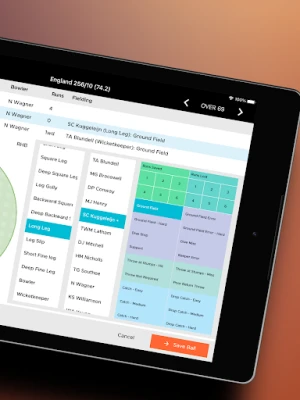 On tablet devices, users can capture advanced real-time fielding analytics, with data syncing directly to NV Play Desktop application. Fielding coding options include player, fielding position, runs saved or cost, and a broad range of other fielding events.