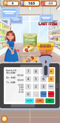 Train to be the best cashier in your own cozy grocery store. Become a math prodigy by counting and entering the price of the grocery items and making change for your customers. Practice your math and calculator skills by being fast in timed mode. Both kids and adults will find this cash register game fun and challenging yet relaxing.